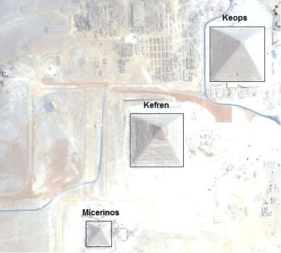 SITUACION EN PLANO DE LAS PIRAMIDES DE KEOPS, KEFREN Y MICERINOS