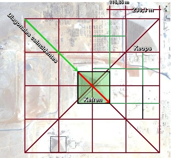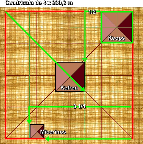 haciendo coincidir a la gran pirámide dentro de la cuadrícula superior derecha,