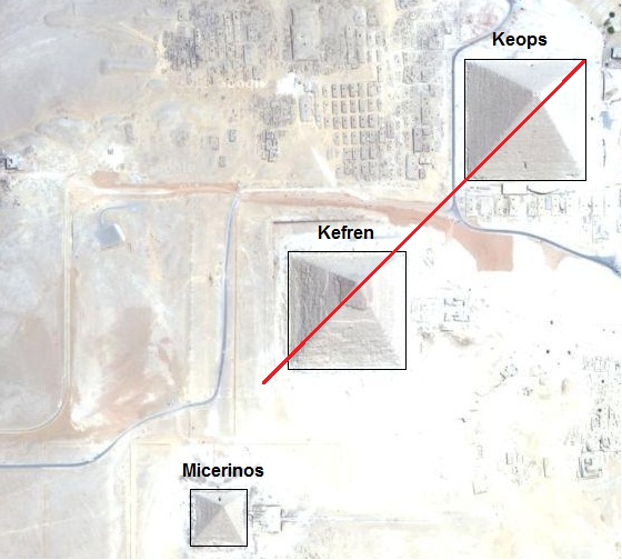 comprobamos que la pirámide de Kefren no está alineada respecto de esa