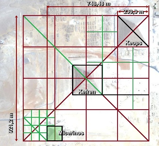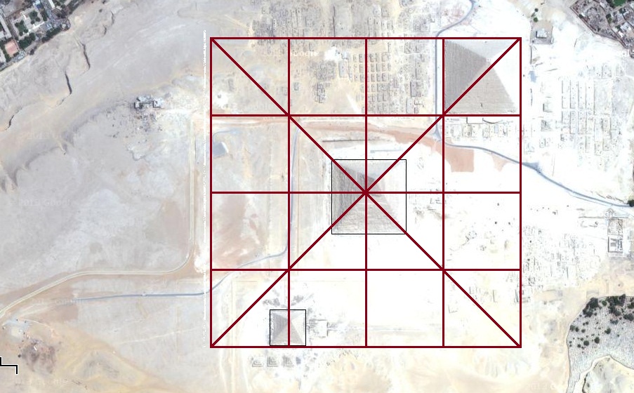 haciendo coincidir a la gran pirámide dentro de la cuadrícula superior derecha,
